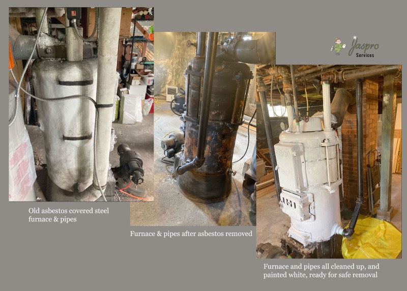 Removal of asbestos from steel furnace and piping